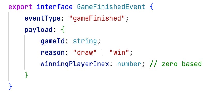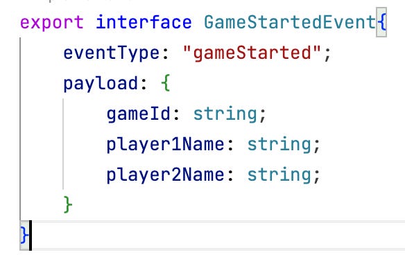 For each event type Darline can decide how to shape the payload. For the event recorded by the StartGame