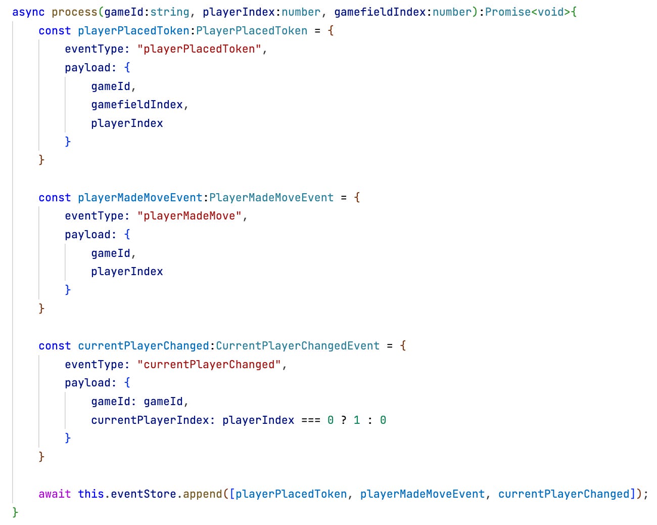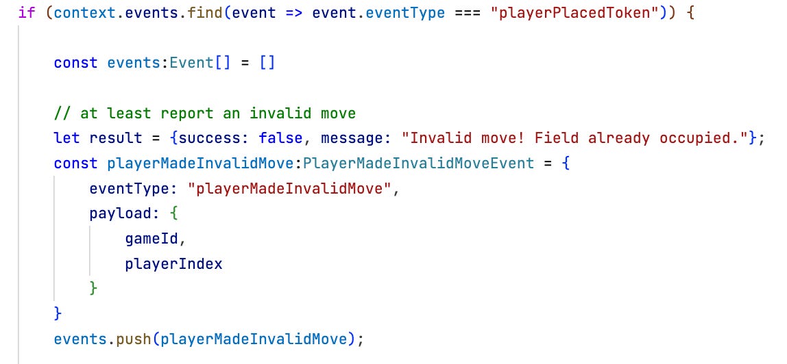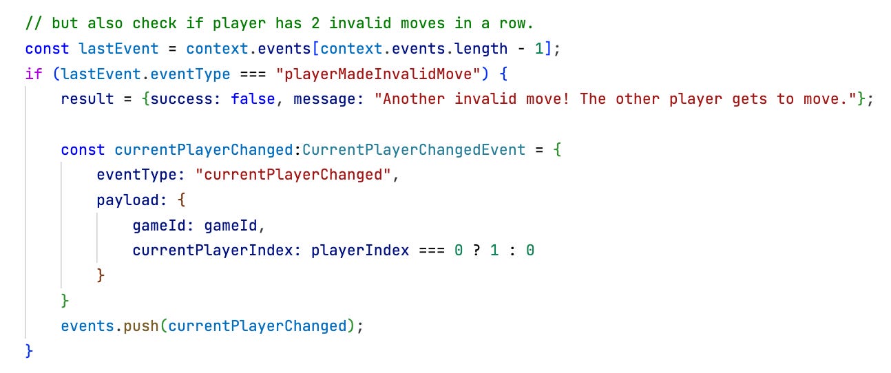 Now not only a second invalid move gets appended to the event stream but also a change of the current player.
