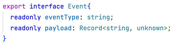 Every command will be mapped to one or more events. Every query will retrieve events of one or the other kind. Darline is confident that’s enough. She’ll manage implement all requirements by just relying on a growing number of types of events. The general one-size-fits-all schema of an event is this: