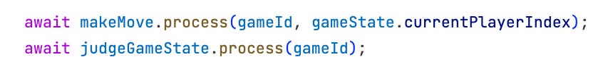 Reflection: Please notice: There is no constraint check in this slice. Darline decides against ensuring that the game hasn’t been finished already. She is assuming a certain use of the slices under the umbrella of her user interface.