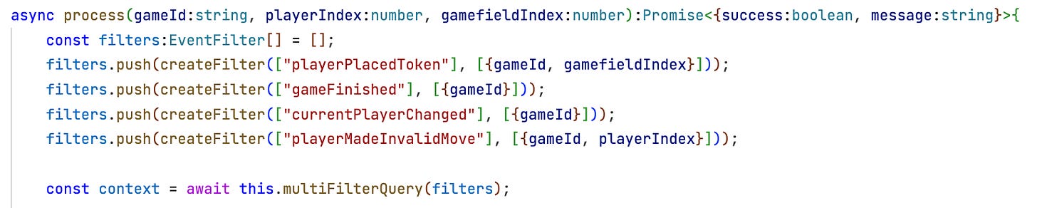 Update 01.08.2025: The Event Store implementation has been updated. Darline’s workaround for multi-filter queries is not necessary anymore. They are natively supported by the Event Store as EventQuery