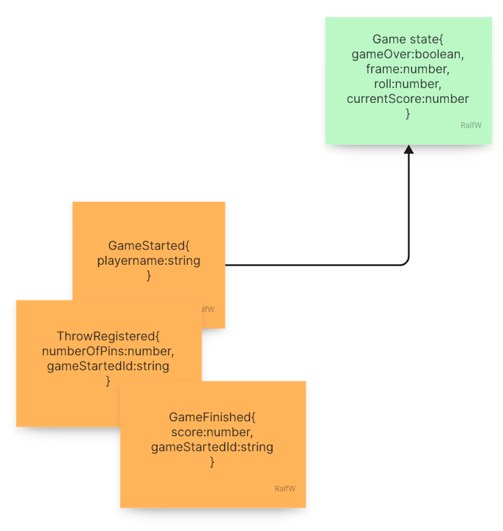 Now on to the query. Which events does the query expect to return its result? Ah, there is a score — maybe a score update should be written? —, but for determining the current frame/throw more is needed. I think I have to postpone the fleshing out the query for a moment.