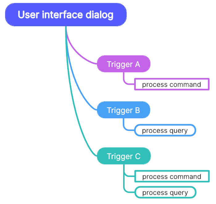 Ideally each trigger should kick off either only a modification of the application state or retrieving application state. Slices thus can focus on one or the other thereby reducing complexity and supporting testability and scalability.3