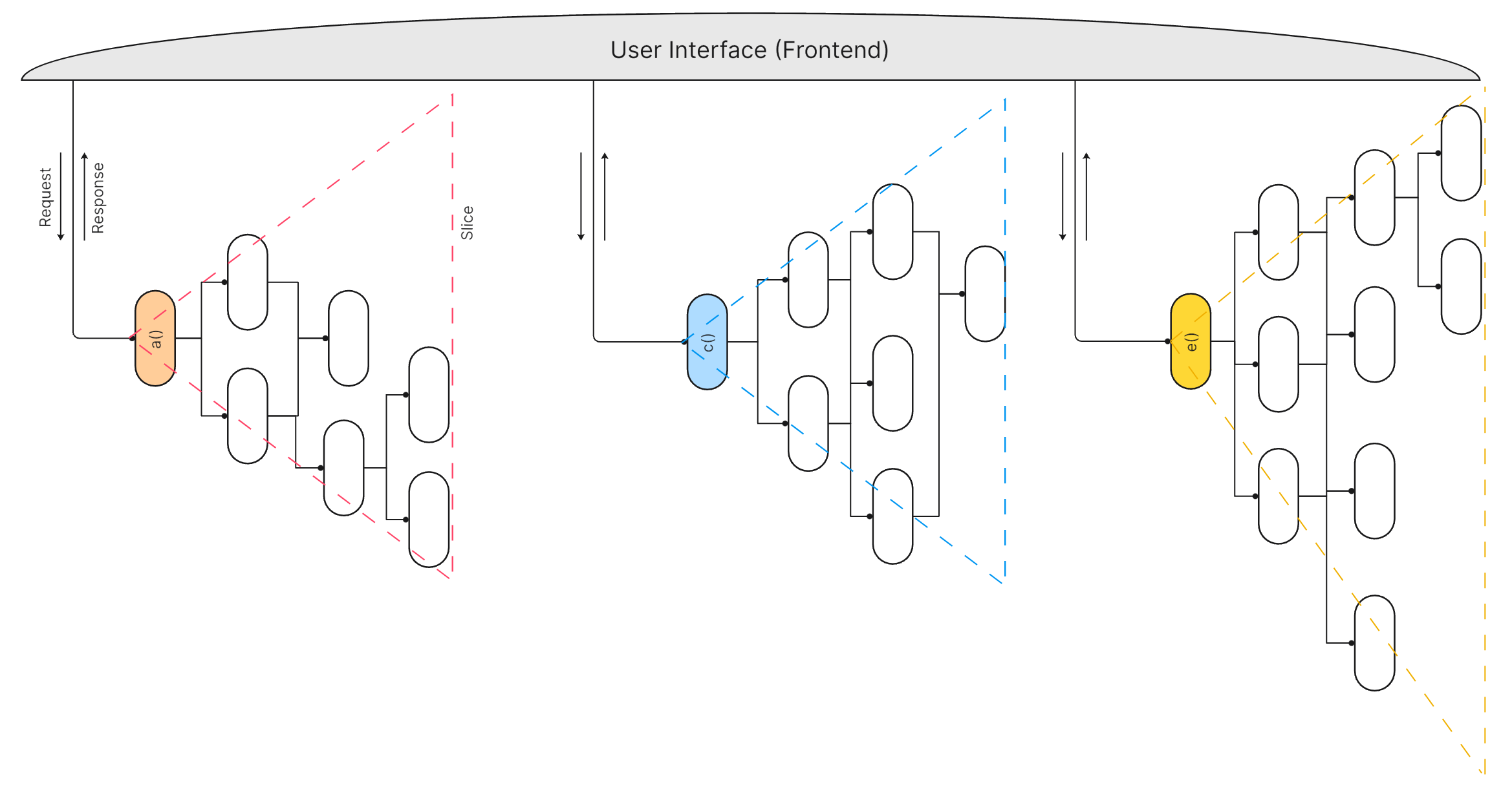 each slice should be understood as a hierarchy of functions with an entry point function at its top, and