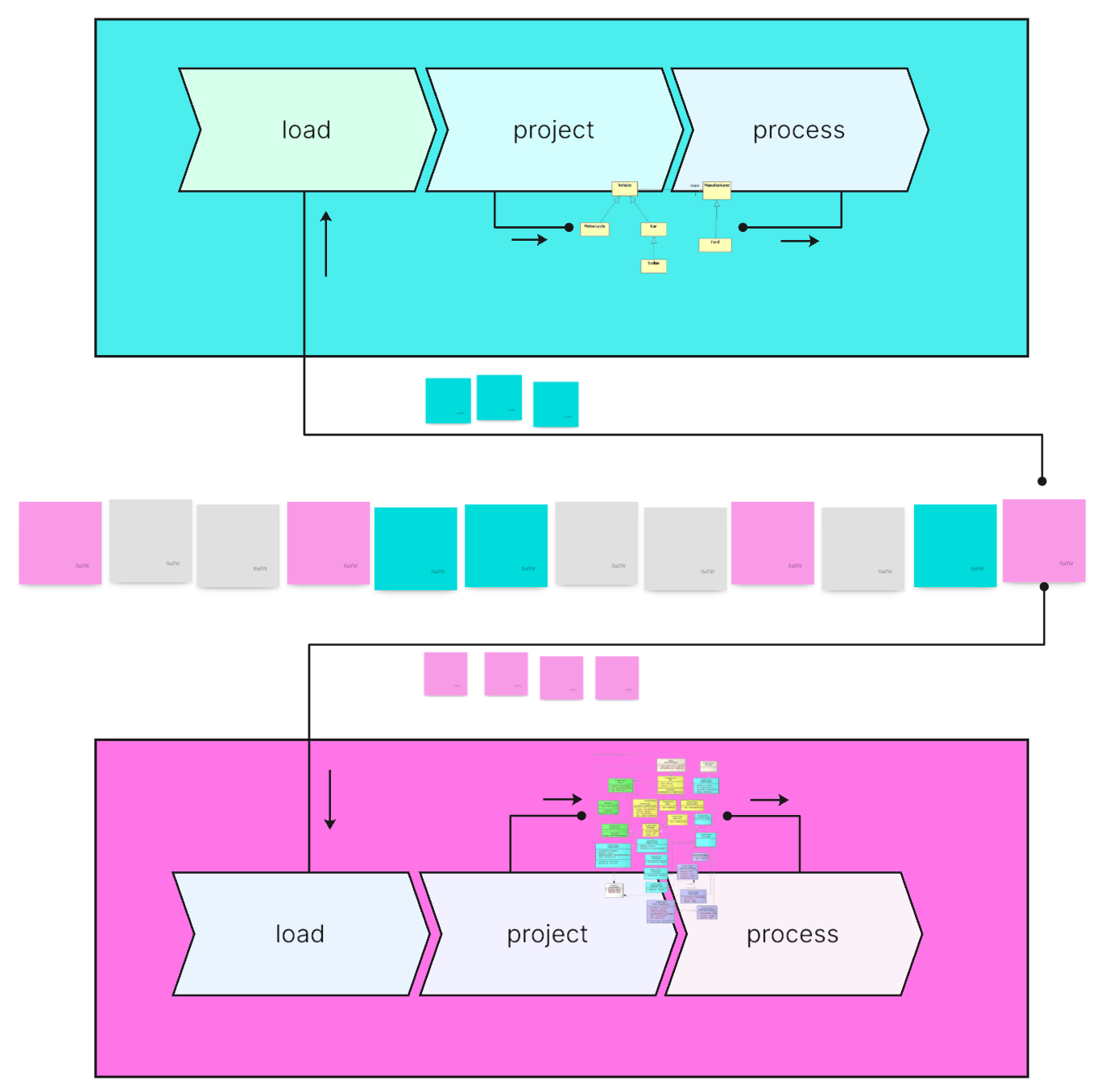 Hence a slice does not “map” events to anything, but rather “projects” relevant events onto structures to its liking. It’s a constructivist view of the data world.