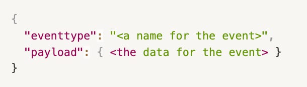 The payload is an event type specific data structure. There is hardly any constraint to its shape. Whatever seems interesting to remember about an event can be put into the payload.