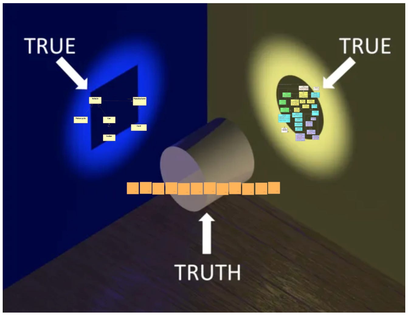This flexibility allows for maximal decoupling of the implementation of larger and smaller requirement scopes. Slices are no longer bound to a single model of reality aka state of the world aka sequence of events. Each slice can have its own interpretation and model of facts — within the boundaries of “common laws”.